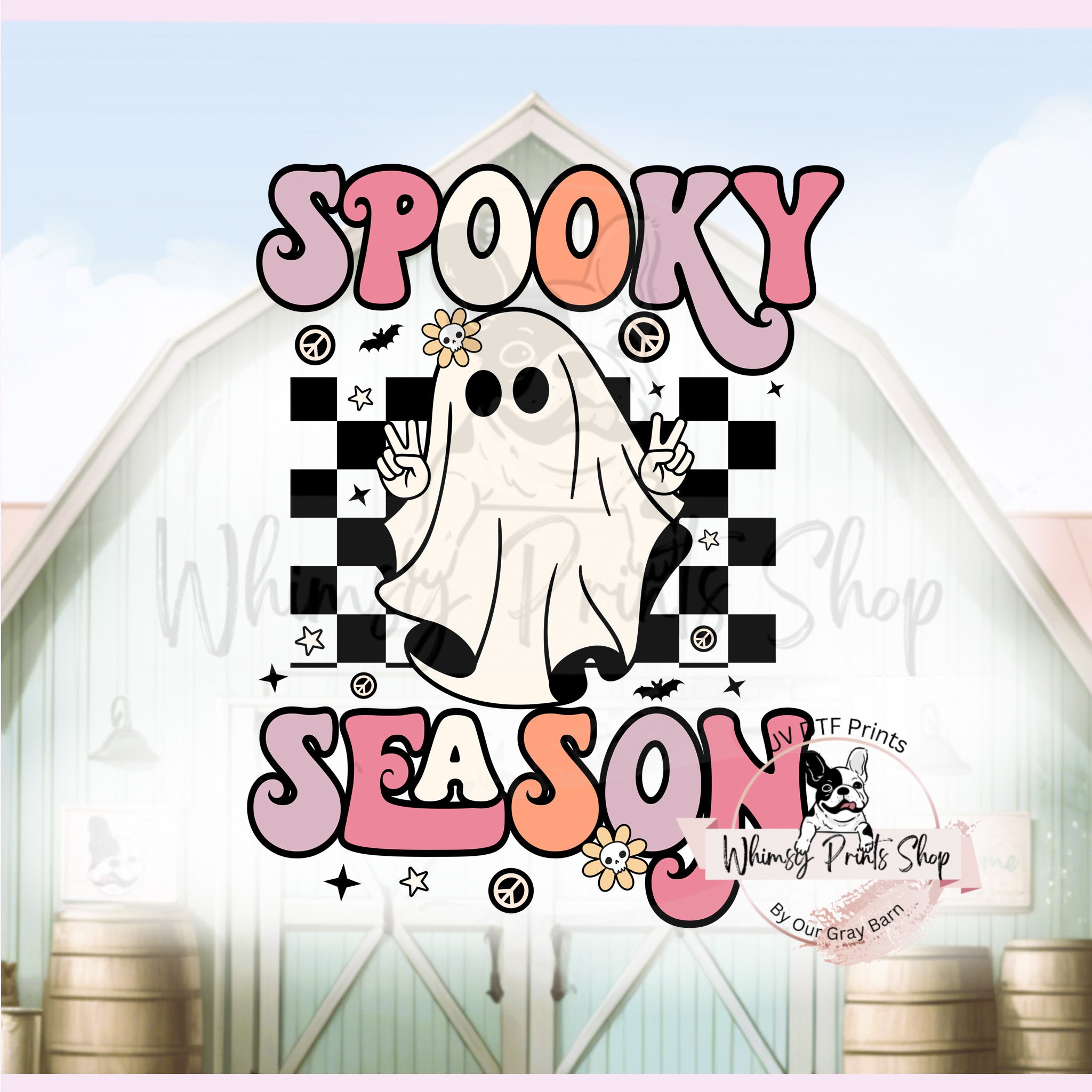 Spooky Season Ghost with Checkered Background