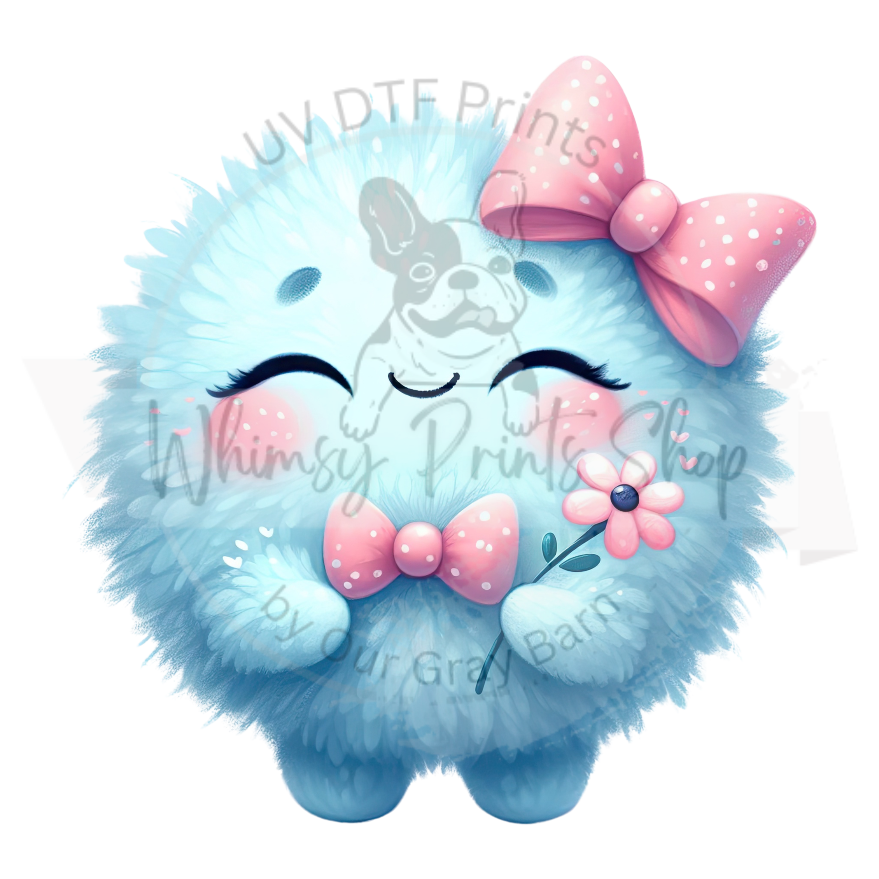 Cartoon Blue Puff Monster - UV DTF Decal Transfer