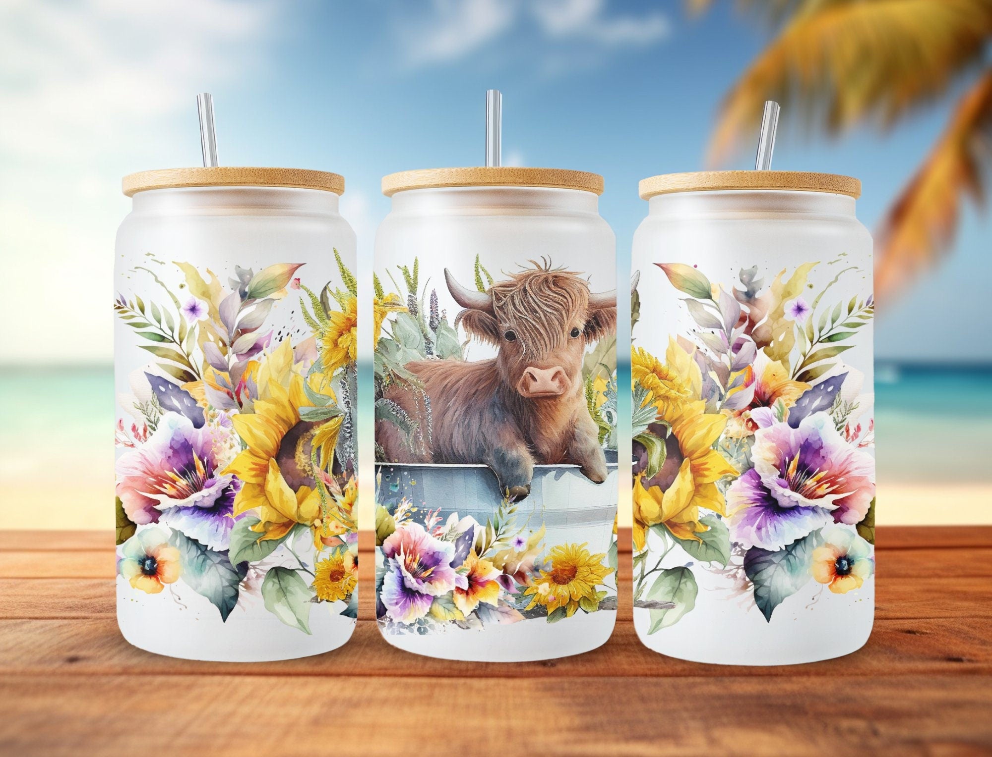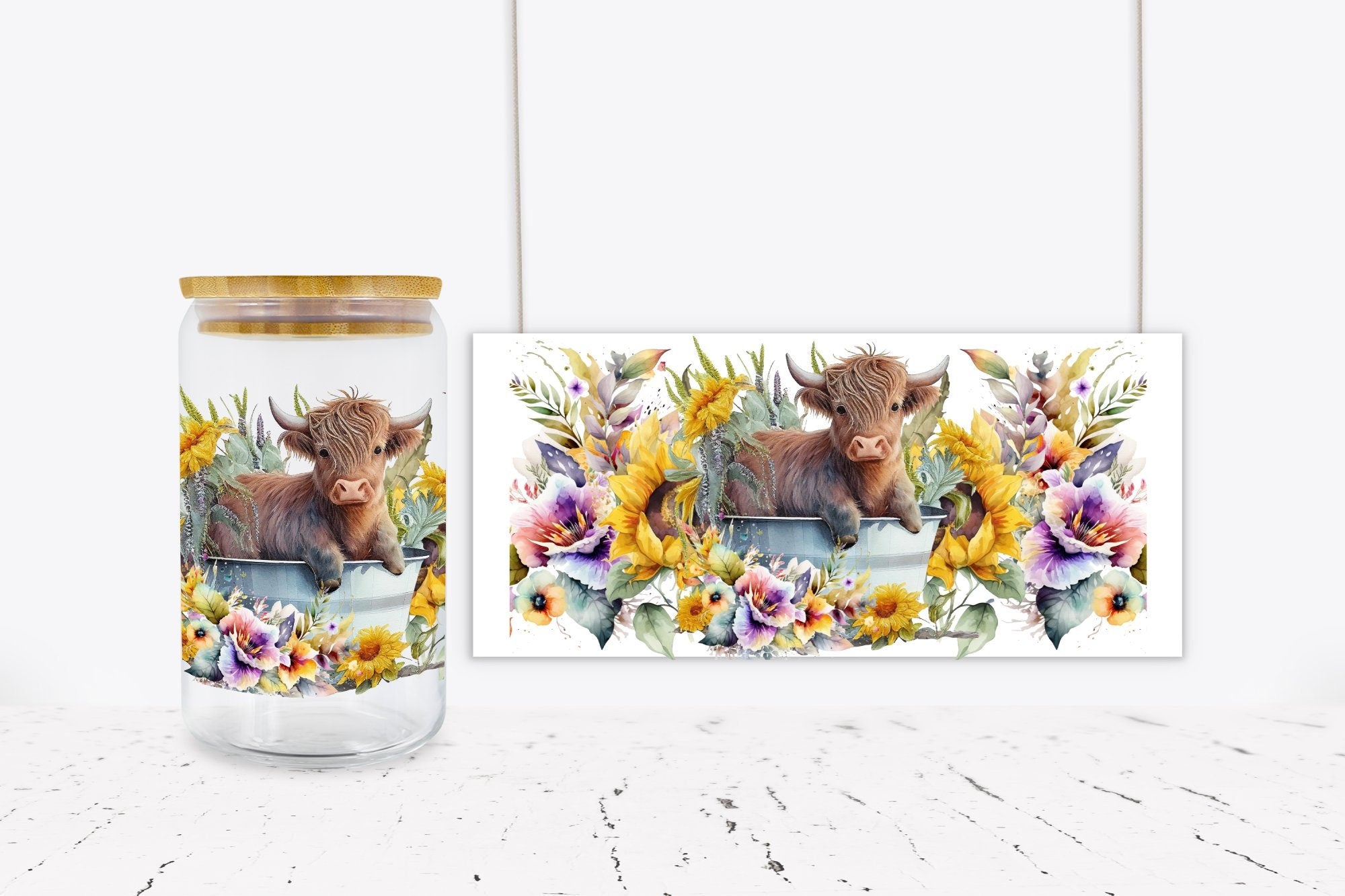 Cow-Flower-Glass-Can-Wrap wp-55, 16 oz glass jar wraps